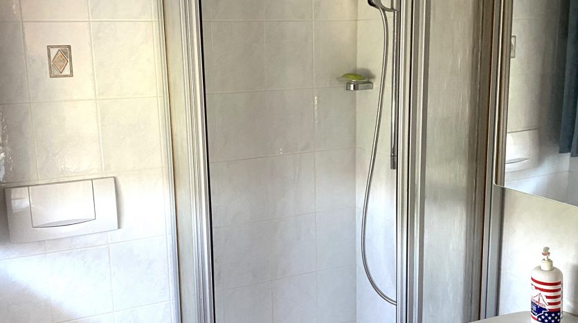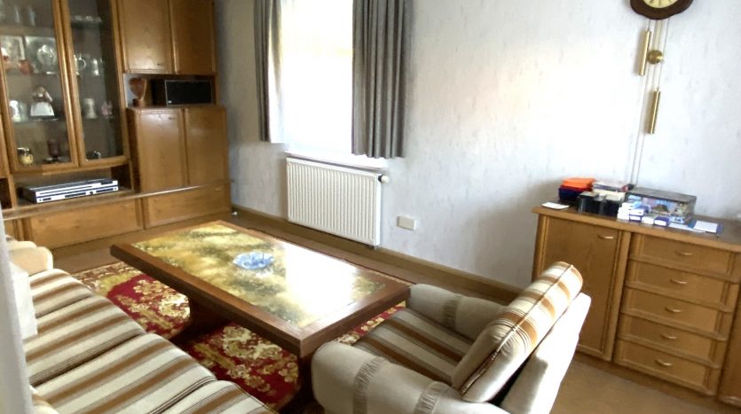 Ausstattung: weiße Kunststoff-Isolierglasfenster; Fliesen- und Laminatböden; modernisiertes Bad in weiß/grau, raumhoch gefliest, mit Wanne, Dusche, WC und Waschbecken und Waschmaschinenanschluß; sep. Gäste-WC in blau/weiß; Einbauküche mit Herd, Backofen, Spülmaschine, Kühlschrank; Schlafzimmer mit Waschgelegenheit; kleiner Keller; Nachtstromanschluß (HT/NT) im Haus; Schuppen; Garage; schönes gepflegtes Grundstück mit kleinem Gartenteich;