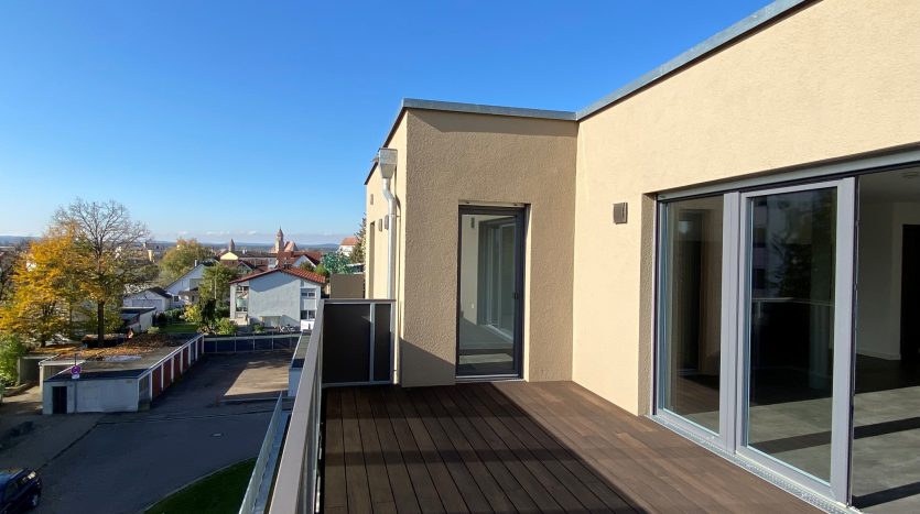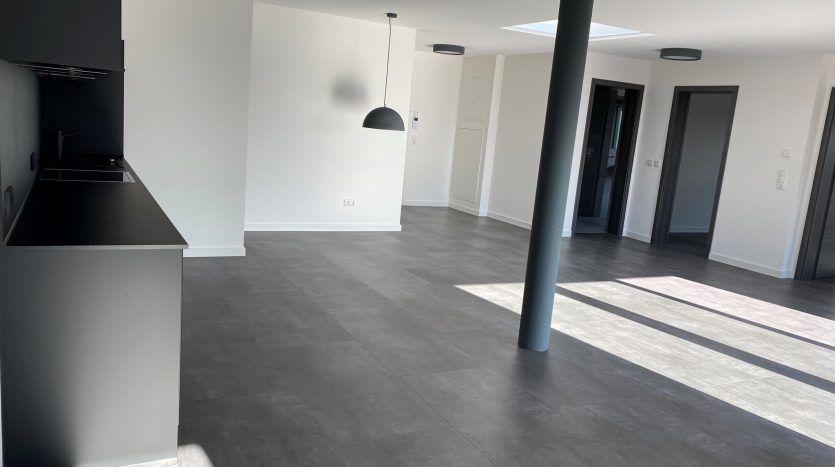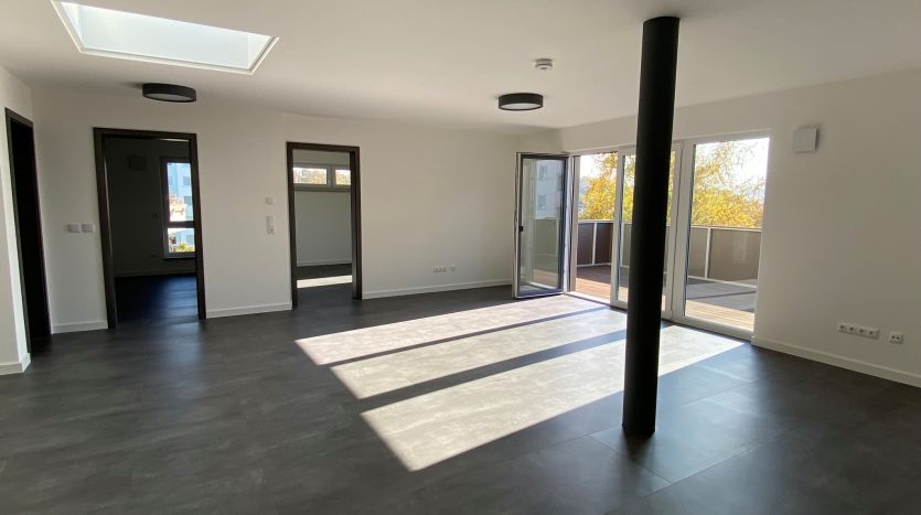 Elektrische Dachlichtkuppel mit Beschattung; elektrische Rollos in der gesamten Wohnung; Bambusbelag auf der Terrasse; Bodenbelag